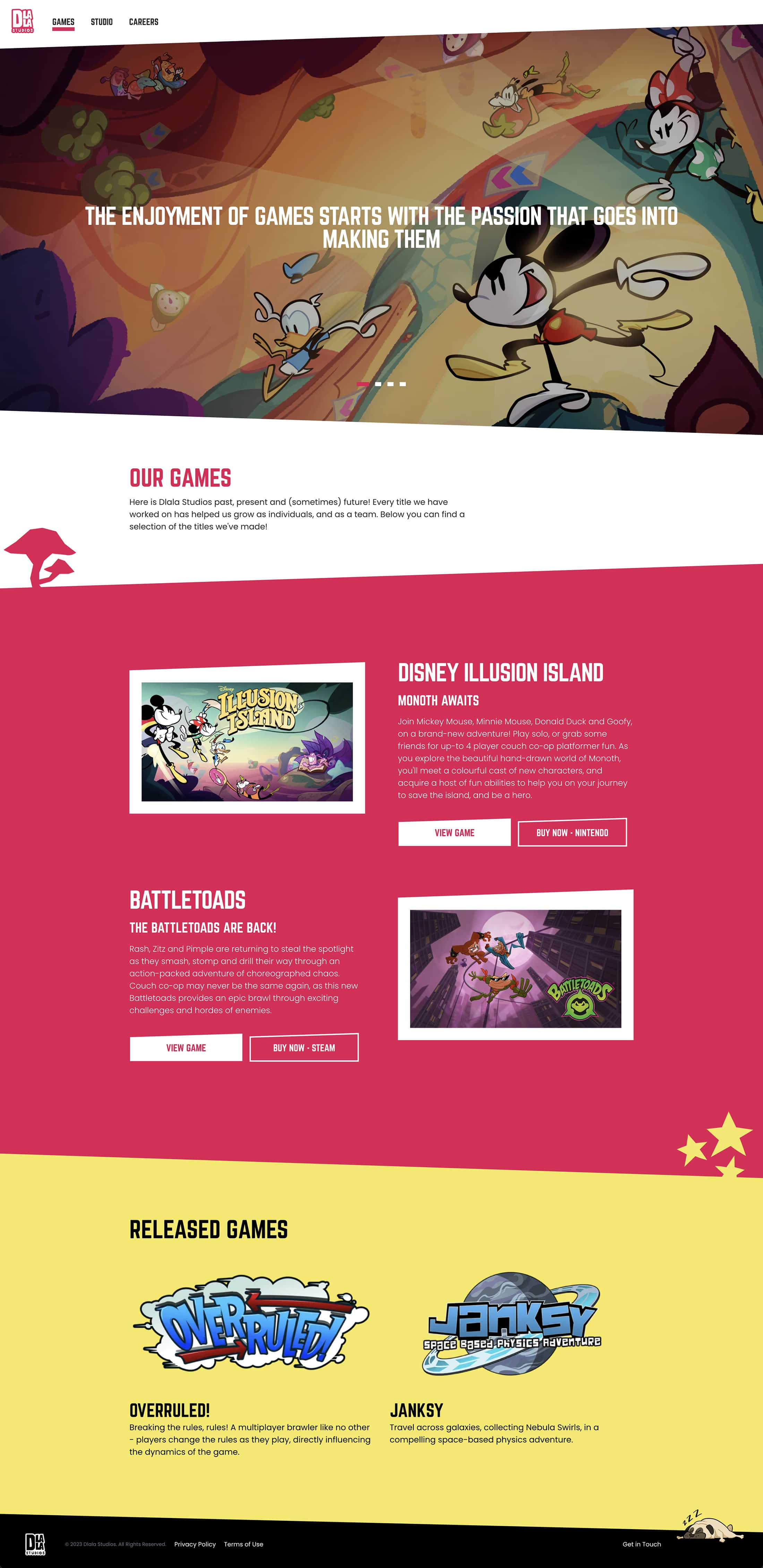 I took charge of building Dlala Studio’s website, leading the process from start to finish. The primary goals were clear: design a website that reflects the identity of the studio and the fun nature of their work, prominently showcase their impressive catalogue of games and integrate their recruitment process seamlessly into the site. To meet the requirements of this project I utilised NuxtJs and Firebase to build the front-end and back-end of the site. The result is a functional and visually appealing website that serves as a robust and scalable platform for the studio.